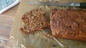 Den Ofen auf 180 Grad Umluft anheizen. Den Teig in eine mit Backpapier ausgelegte Kastenform einfüllen und ca. 40 -45 min backen.