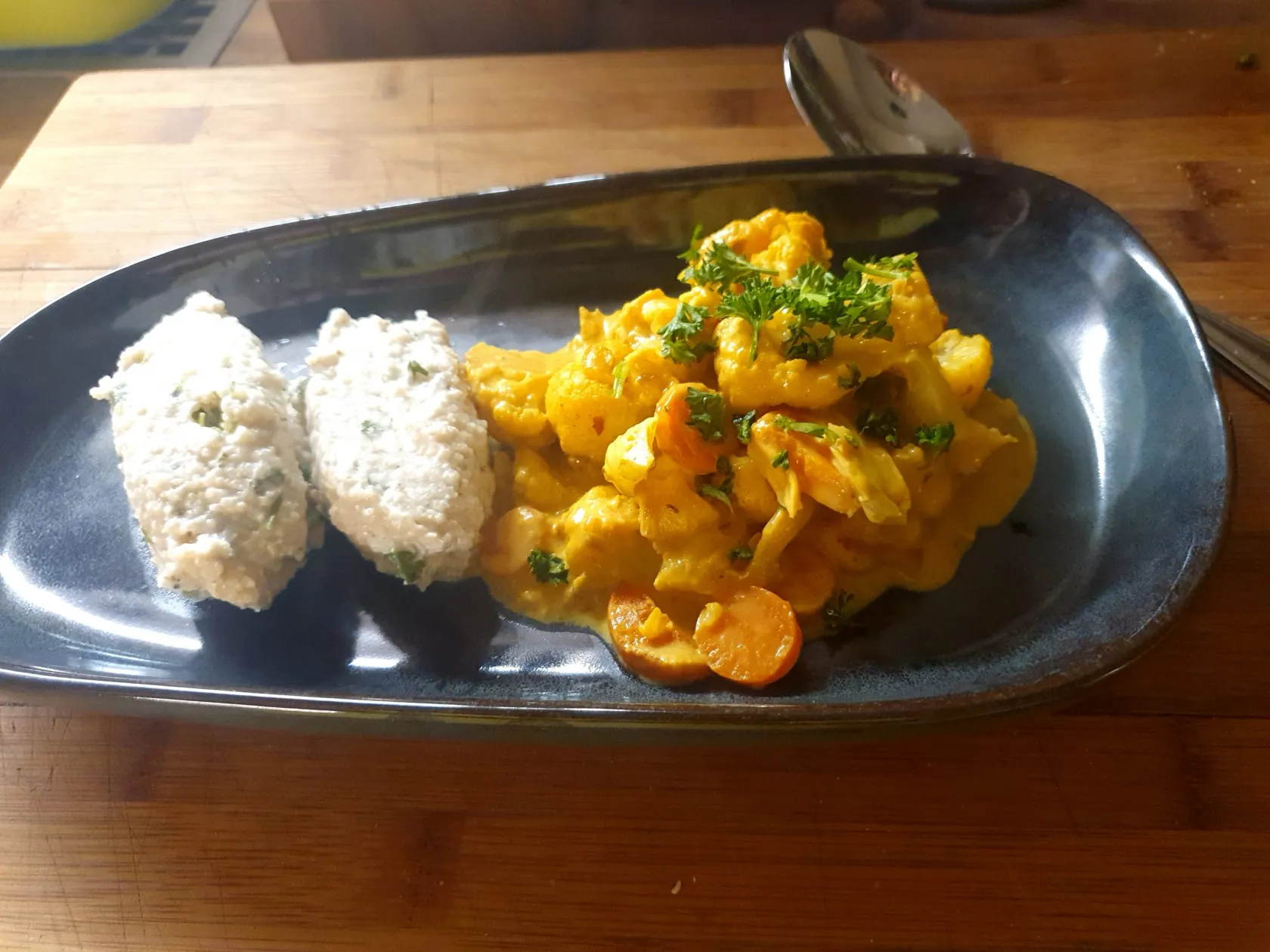 Das Bluemkohlcurry ist ein tolles veganes Essen,was nach Feierabend schnell auf dem Tisch steht.