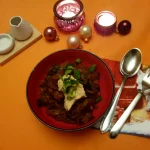 - Salz, Rauchsalz Pfeffer, 1 Lorbeerblatt, 3 Pimentkörner, optional 2 Curryblätter