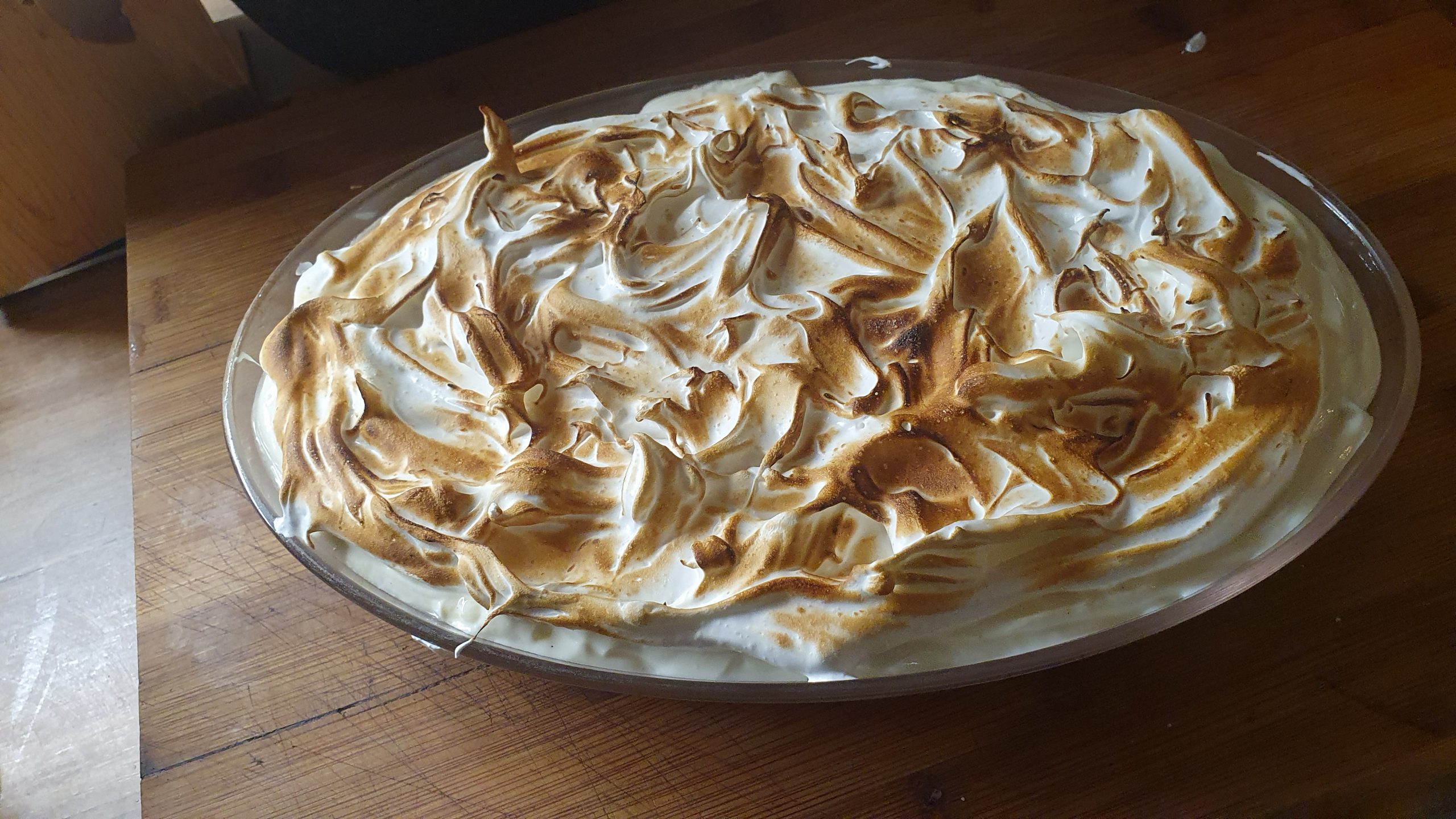 Mit einem Küchenbunsenbrenner das Baiser abflämen.