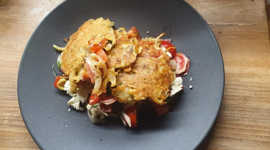 Zwiebelbratlinge mit Tomatensalat