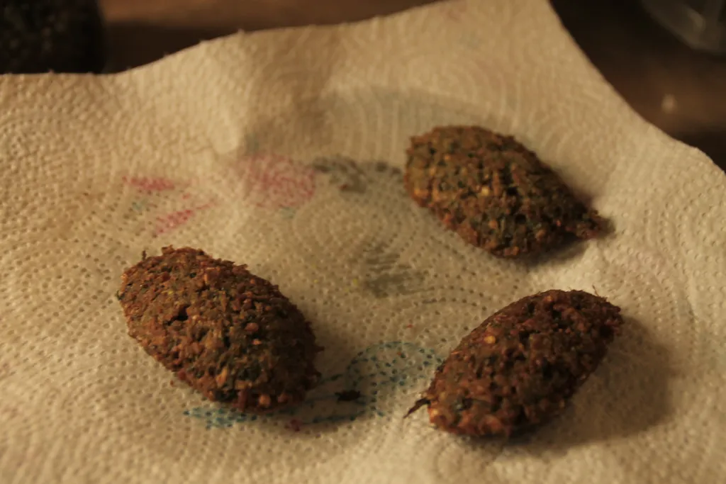 Die fertigen Falafel auf einer Papierserviette abtropfen lassen.