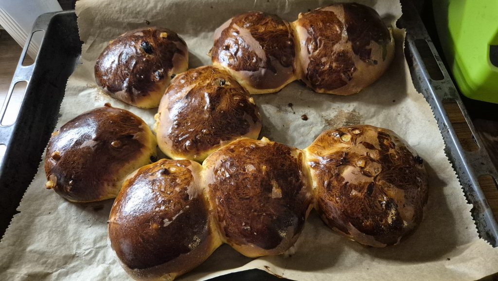 Das Rezept dieser leckeren Brötchen kommt aus Großbritanien, in Cornwall gab es diese Brötchen an Karfreitag. Das besondere sind die Safranfäden, die dem Teig die schöne Farbe gibt.
