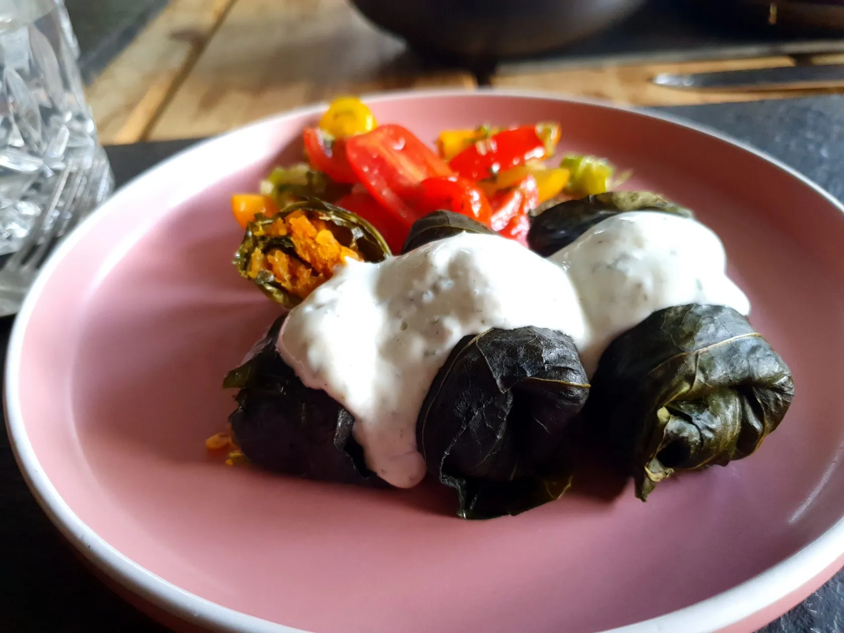 Unsere Kohlrabis wuchsen in diesem Jahr wieder ordentlich. Auch die Blätter waren sehr groß und sahen klasse aus. Kohlrabiblätter haben sehr viel Vitamin C, Mineralien und natürlich viel Chlorophyll, daher verarbeite ich sie auch sehr gern. Ob im Eintopf als Topping, oder auch kurz in Öl gebraten und als Topping zu Schmorrpfanne oder Grillgut. Da die Blätter schön groß waren, habe ich sie mit einem Linsenragout gefüllt.