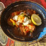 In der Zwischenzeit für den Minzjoghurt die Minzblätter fein hacken und alle Zutaten mit dem Joghurt verrühren und abschmecken.