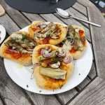 Am Sonntag Mittag starteten wir den Grill noch einmal und es gab die „Matbucha“-Sosse mit Gemüse, gegrillte Auberginen auf kleinen Focacciafladen mit Tahina und Jalapenos und veganem Labaneh. Den Abschluss machte ein schönes Stück Apfelkuchen. Am Sonntag Abend ging es gemeinsam in die urige Dorfkneipe, wo wir uns mit den Einheimischen bei einem Bier unterhielten. Danke an Denise und Uwe für die beiden schönen Tage.