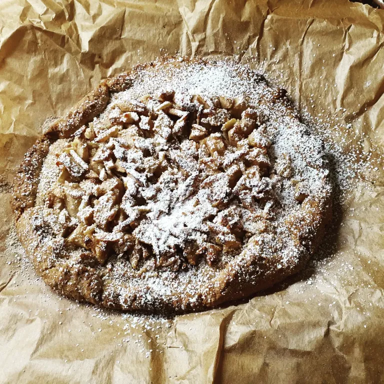 Den Ofen auf 180 Grad vorheizen und die Galette nun für 30 bis 45 min backen. Aus dem Ofen holen und mit Puderzucker bestreuen , lauwarm servieren.