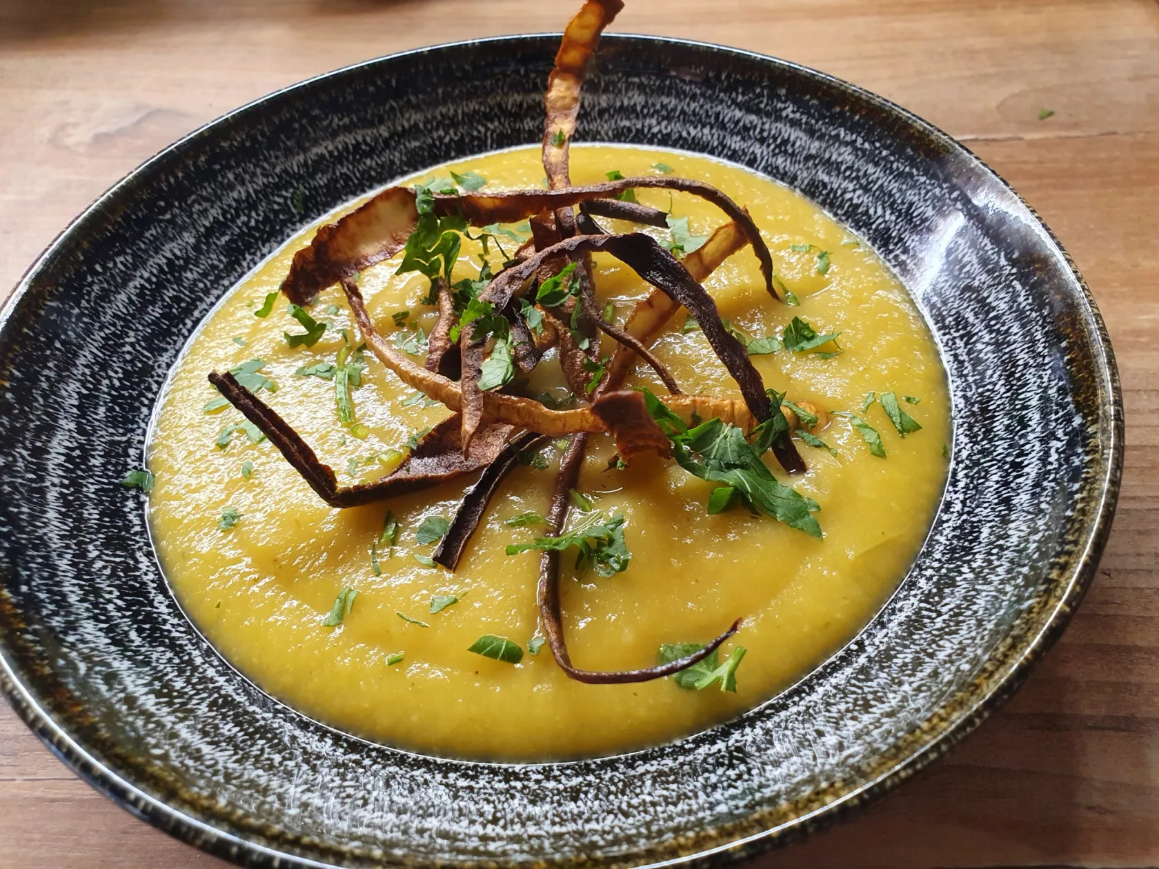 Pastinaken-Möhrensuppe mit Pastinakenchips