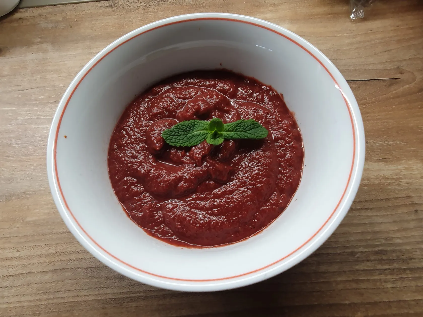 Rote Beete mit dem Olivenöl, Balsamicoessig und Sumachgewürz in den Mixer oder Küchenmaschine geben und fein pürieren. Mit Salz und Pfeffer abschmecken.