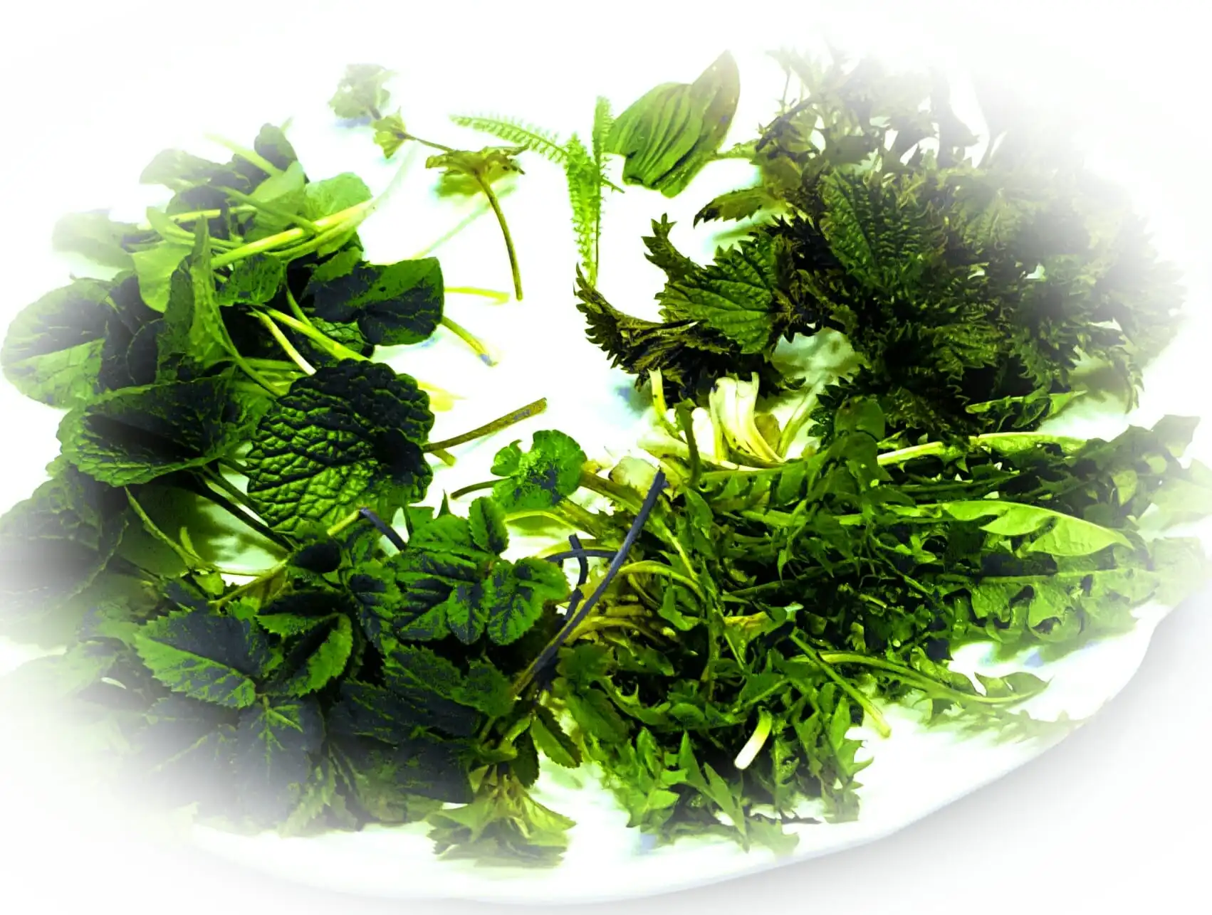 Wildkräuter pflücken und kurz abbrausen.