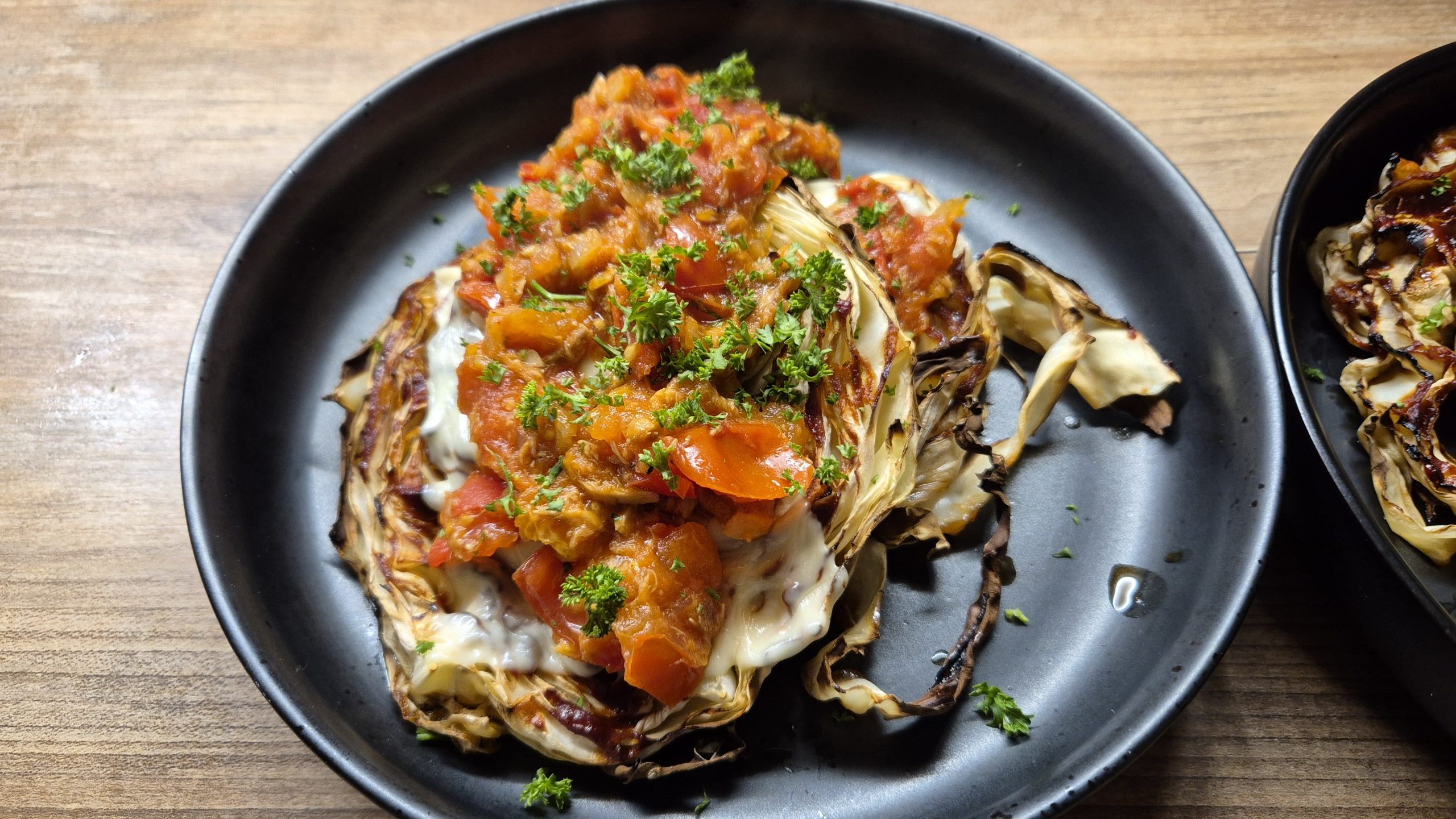 Kohl ist ein tolles und vielfältiges Gemüse im Winter. Wobei der Kohl oft das ganze Jahr zu bekommen ist. Heute habe ich mich mit dem Spitzkohl beschäftigt. Den kann man braten oder fermentieren, oder wie im heutigen Rezept auch in Scheiben im Ofen backen. Wenn der Spitzkohl mit einer schönen Marinade bestrichen wird, bekommt er eine tolle Farbe und sehr schönen Geschmack.