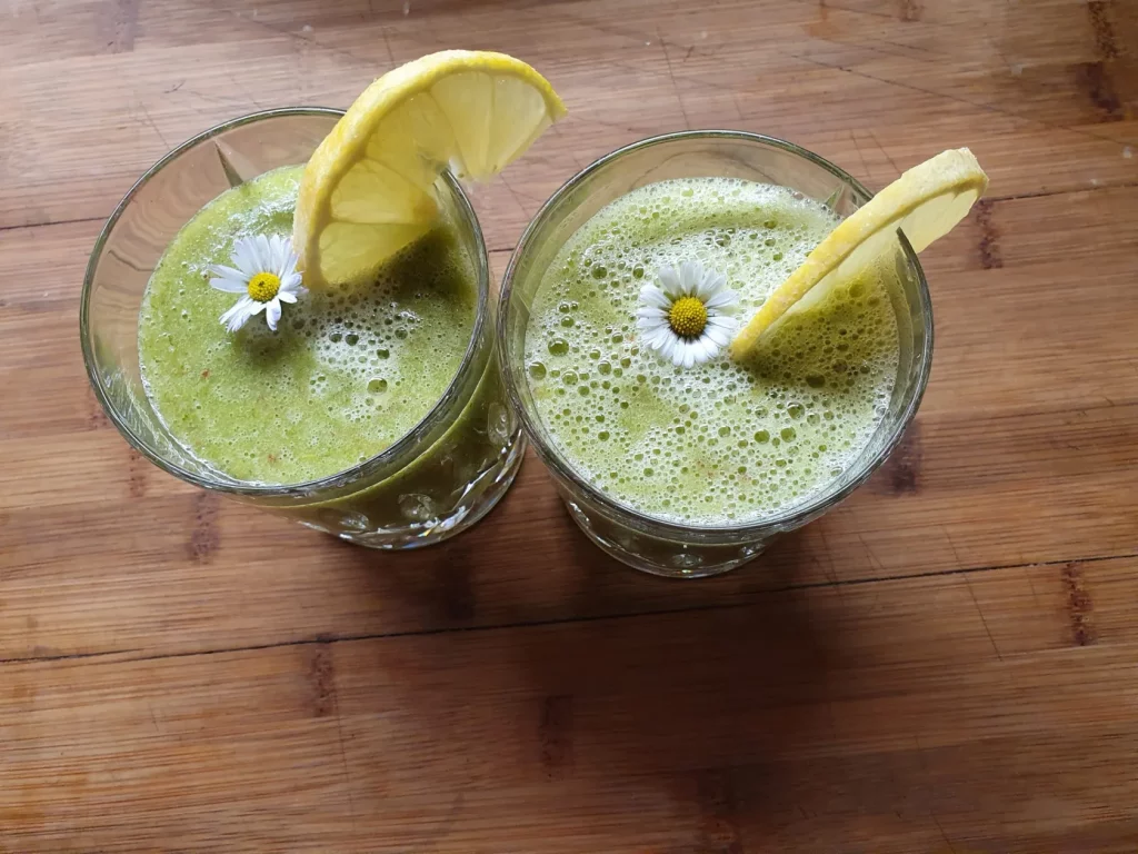 Daher machen wir im März meine Darmkur. Hierbei unterstützen wir den Darm mit einem wertvollen ballastoffreichen Shake. Es gibt Smoothies mit Wildkräutern und esse viel Gemüse und Salat. Dabei kommen die Wildkräuter in den Salat oder bei geschmortem Gemüse kurz vor Ende des Garens in das Essen. Hier gibt es in den nächsten Tagen ein paar Rezepte mit Wildkräutern.