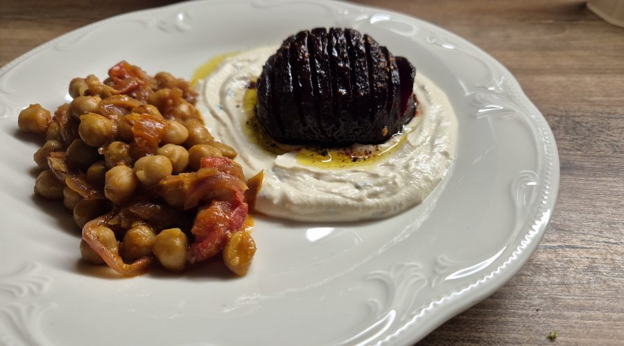 Rote Beete auf einem Bett aus Tahinajoghurt